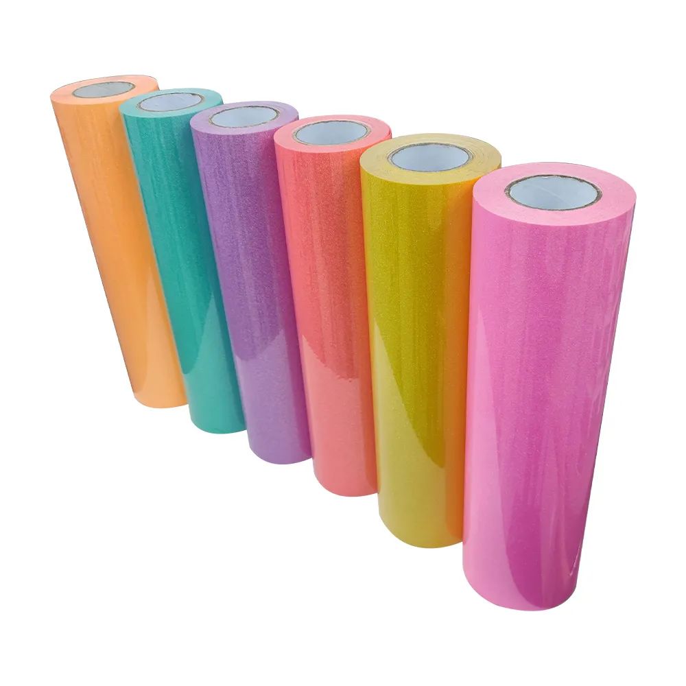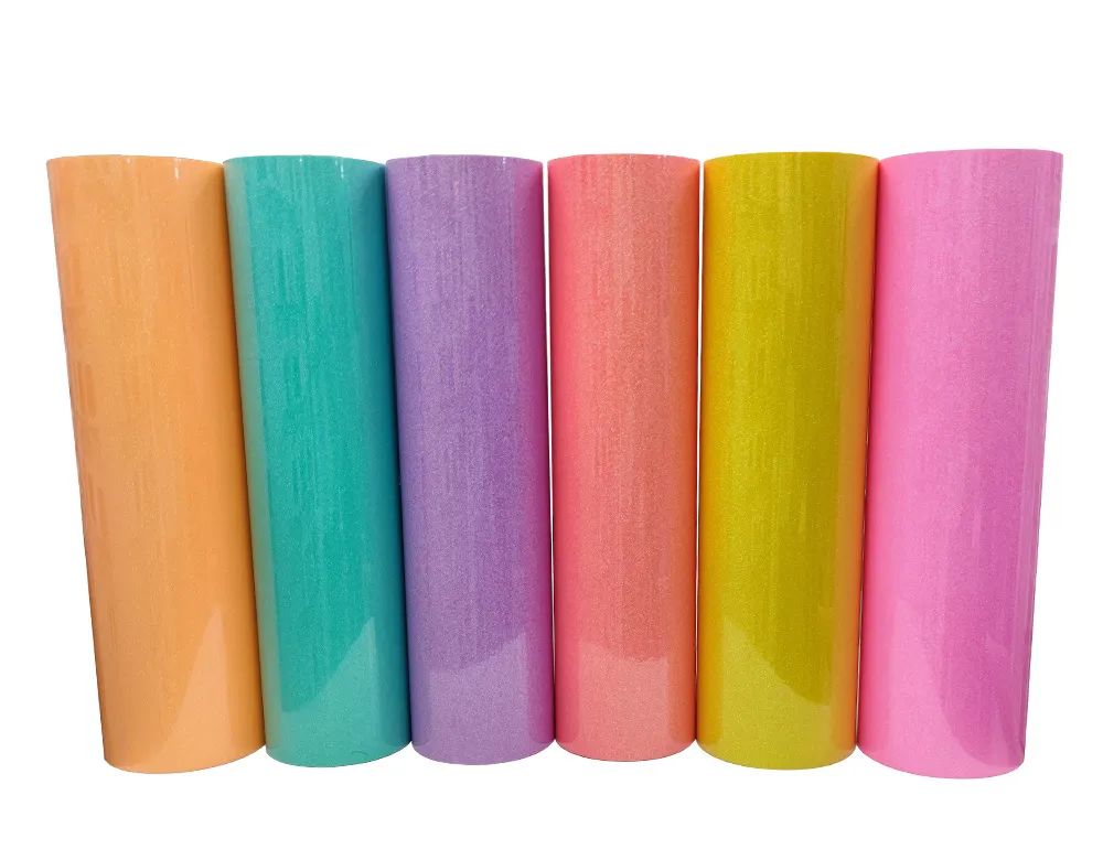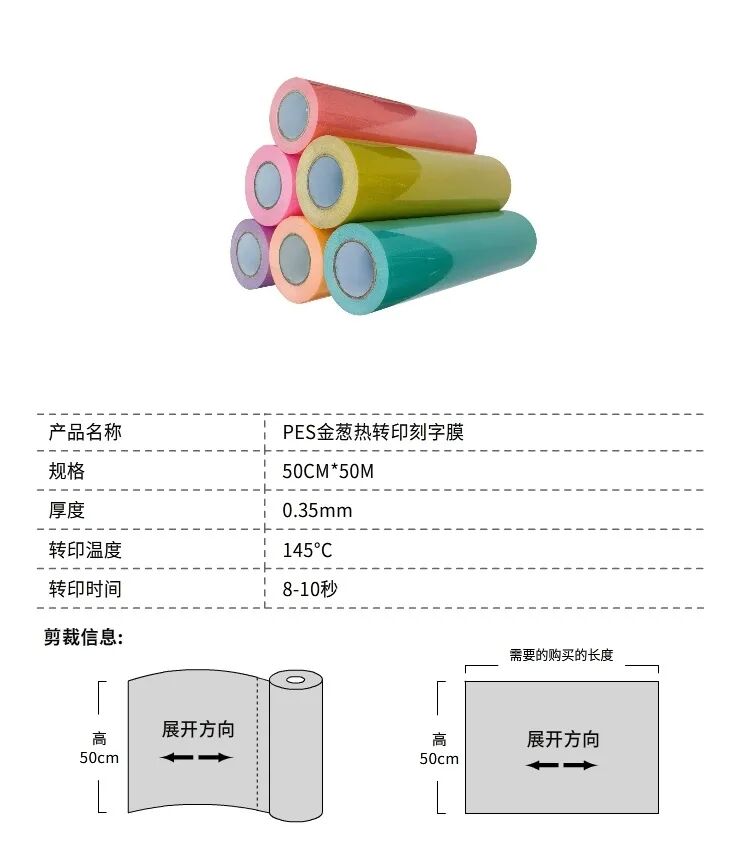 金葱刻字膜产品立体感非常好,金葱粉均匀细致,闪光效果均匀,深受大多数人喜欢。具有闪亮效果,该产品需要与电脑刻字机及烫画机配套使用,非常方便,可由自己的喜好或客户要求选择色彩,以增加承应物的丰富性和变化性,具有优越的洗水色牢度及胶粘牢度,且手感极佳,柔软不开裂,有弹性,时尚环保!