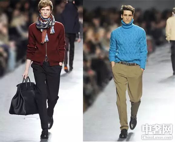 在爱马仕男装服饰系列中以都市节拍为主题,在稳重之余更增添了率性随和,毫不张扬地展示优雅品位。西装上多变的风格,让人在快节奏的都会生活中游刃有余。爱马仕最爱羊毛,经常出现超精细羊绒、羊绒毡、羊绒真丝混纺、Fumée烟雾图案印花羊绒、羊毛加做旧效果羊绒、紫貂绒羊绒加褪色效果羔羊皮、羊毛毡等等,数不尽的纯羊毛与羊毛混合制品。