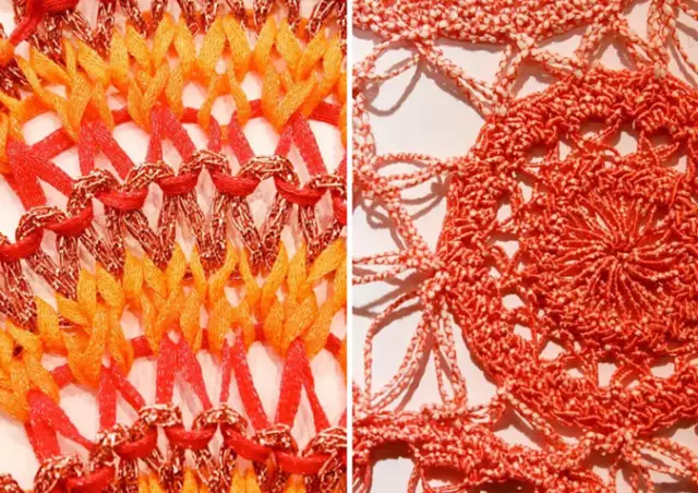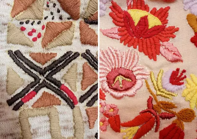 现代手工艺细针距表面以手工艺细节作为装饰,如质朴刺绣、装饰和珠饰细工。半透明闪烁纱线融入此类细节表面,用来包裹串珠饰和珠片,增强装饰效果。