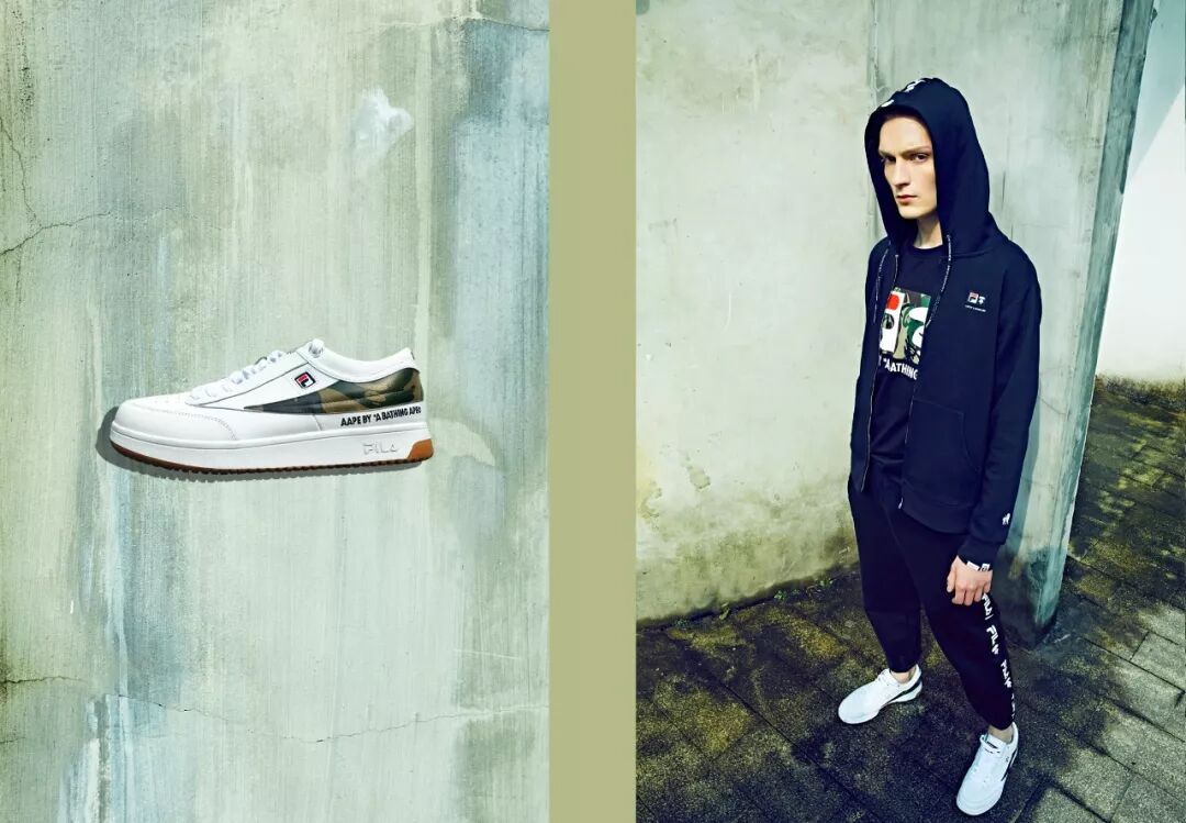 此次的 AAPE x FILA T-1 联名款的各种细节上可以说是处处体现了 AAPE 的存在。