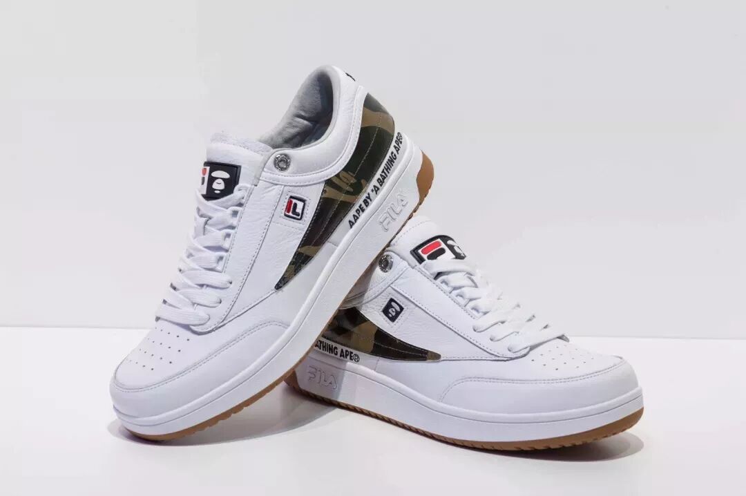 制造出这一火爆局面的鞋款就是这双 AAPE x FILA T-1。