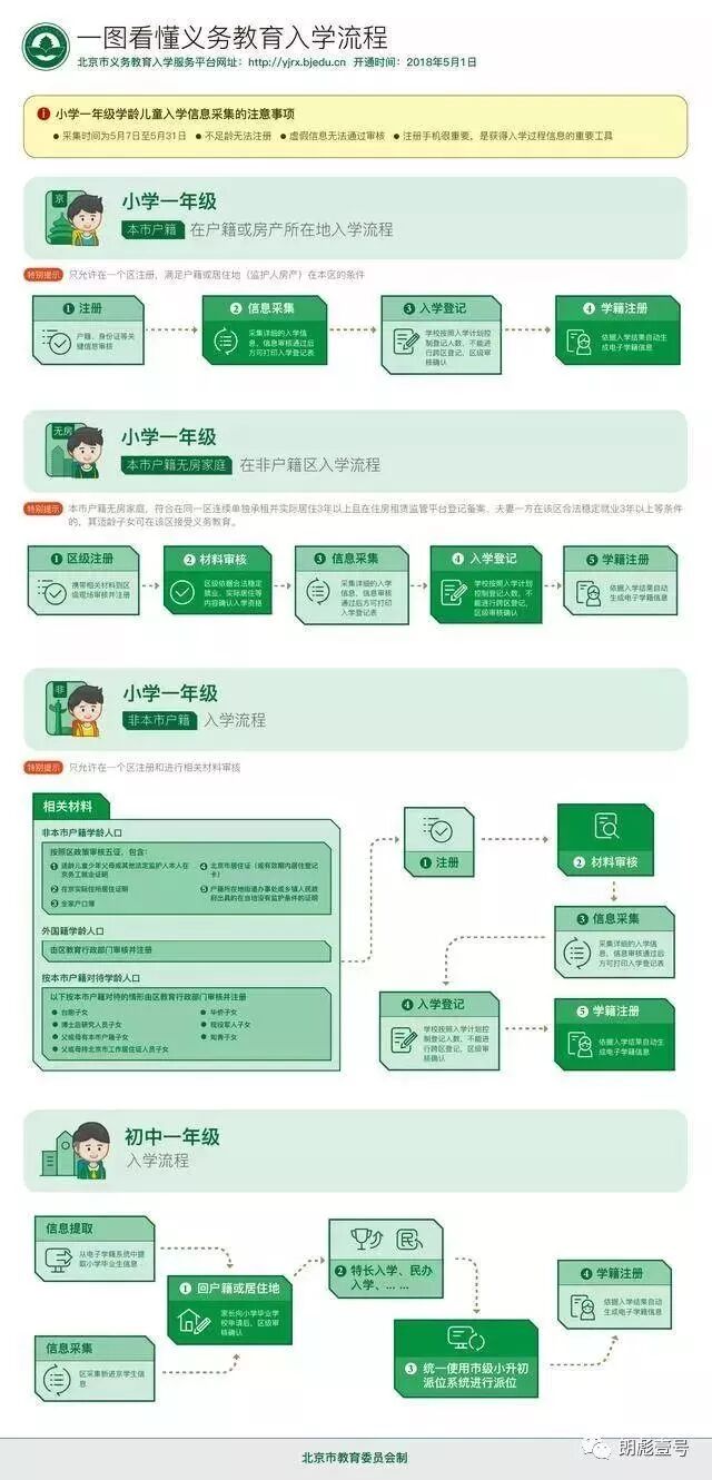 市教委同时发布基础教育入学各项工作时间表:5月1日,开通义务教育入学服务平台入学政策宣传门户。5月7日,开始采集入学信息。