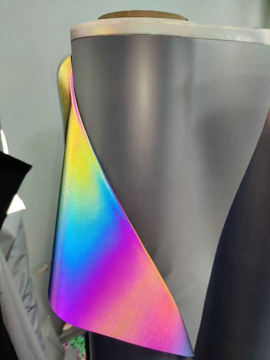 七彩反光刻字膜系列,厚度为15个丝耐高温,不脱胶不变形,色层由反光材料合成,在光照产生反射效果,印服装上能表现出绚烂的色彩效果,非常新潮。